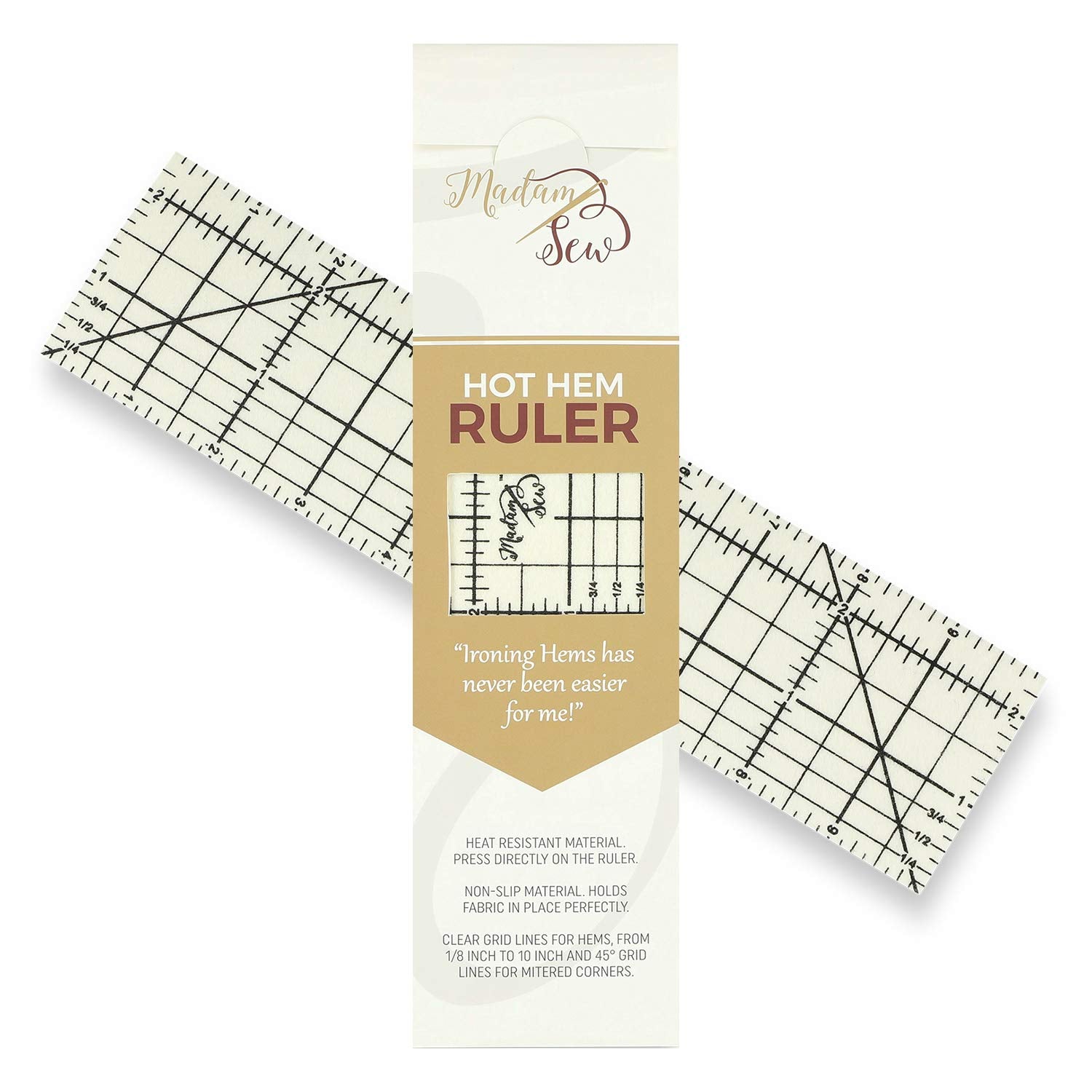 I'm a big fan of everything I've purchased from Madam Sew. In my experience they have consistently great products for sewing. Pressing/ironing is SO important in sewing if you want to get a nice clean finished product. This Hot Hem Ruler is great for getting consistent hems by allowing you to iron directly on the ruler. Just fold your raw fabric edge over the ruler to the desired hem width and iron. Super easy and helpful!